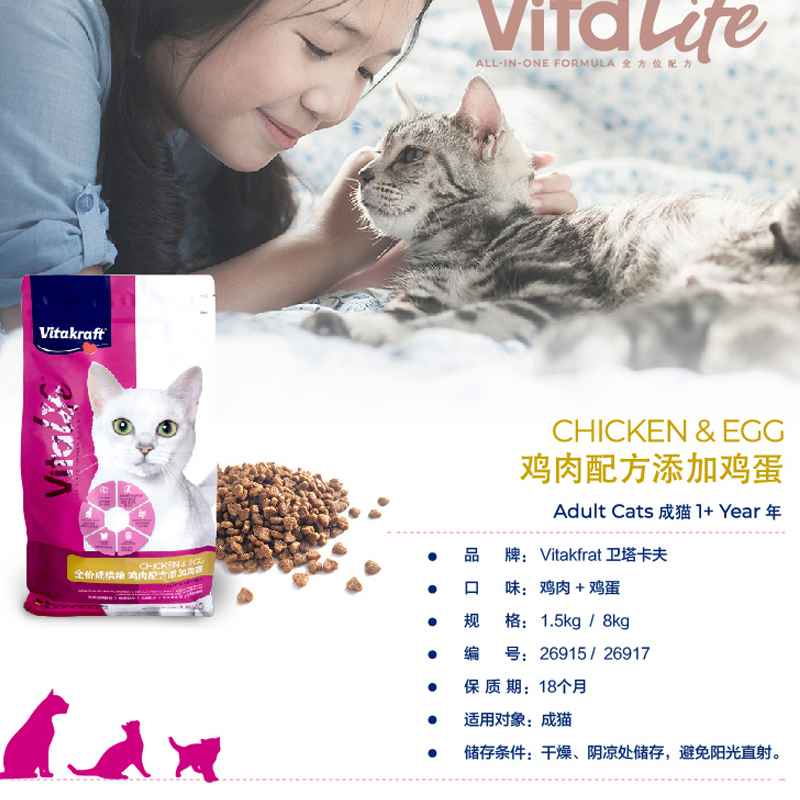 卫塔卡夫(Vitakraft)猫粮 全价成猫幼猫奶糕哺乳期猫粮 宠物猫咪主粮 成猫粮鸡肉鸡蛋8kg