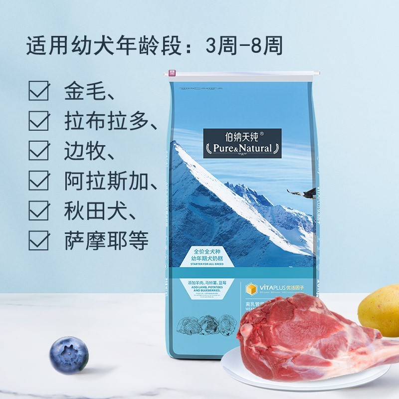 伯纳天纯宠物狗粮全犬种奶糕狗粮3周离乳幼犬孕育哺乳期母犬柯基博美泰迪 全犬幼犬10kg