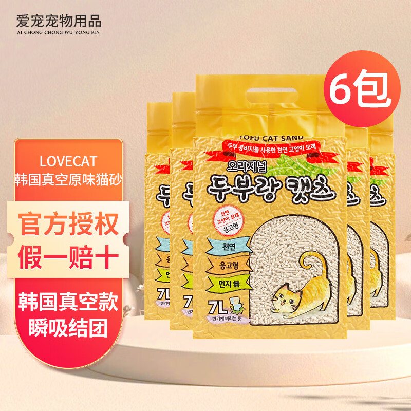 爱宠爱猫猫砂 love cat猫砂豆腐猫砂原味绿茶植物猫砂除臭易结团可冲马桶 原味豆腐猫砂 5.6斤*6包