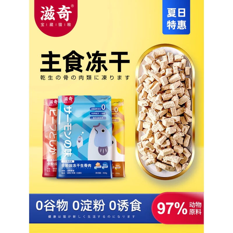 醇粹(Purich)滋奇价生骨肉主食冻干 主粮升优选 鸡肉牛肉兔肉宝藏猫粮450g 【冻干】鸡肉味450g/袋 450g /袋