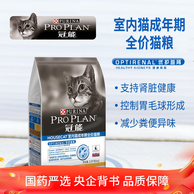 【效期6个月】冠能PRO PLAN 室内成年期全价猫粮 干粮2.5kg 优护益肾 室内成猫2.5kg