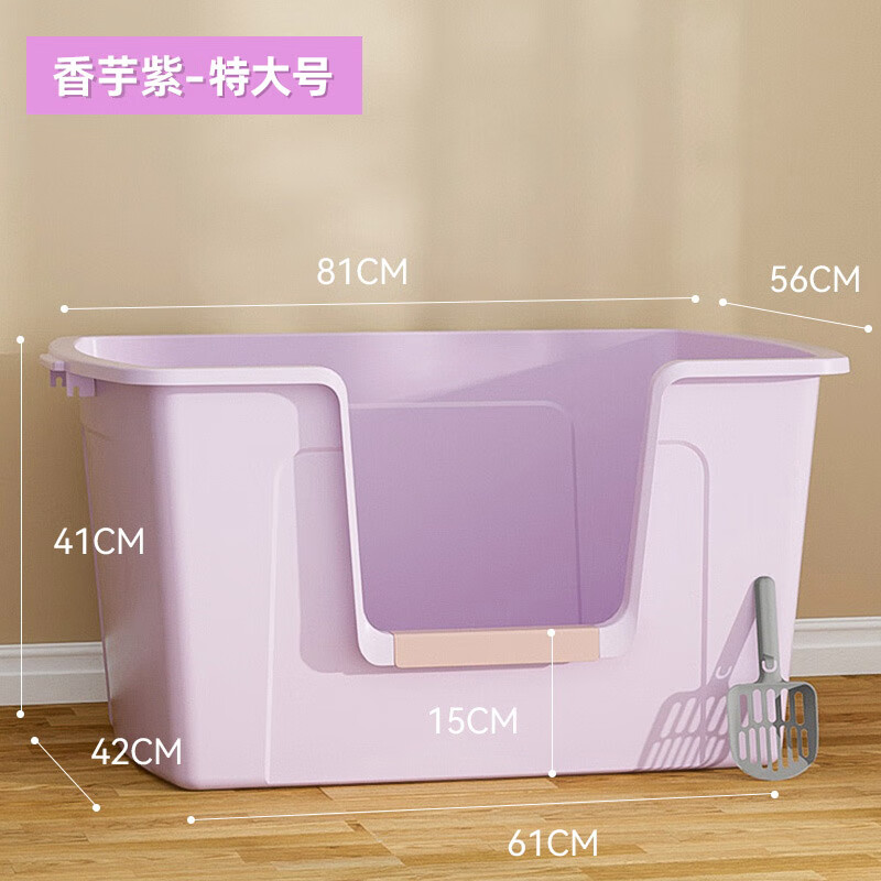 华元宠具(hoopet)猫砂盆特大号开放式巨型猫沙盆防外溅加大加深缅因猫咪超大猫厕所 香芋紫【巨大号81*56*41cm】
