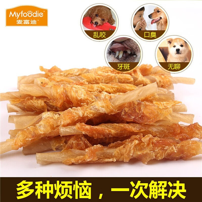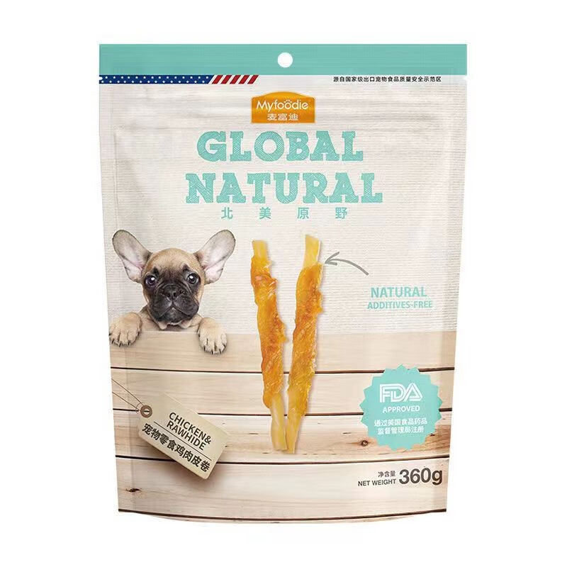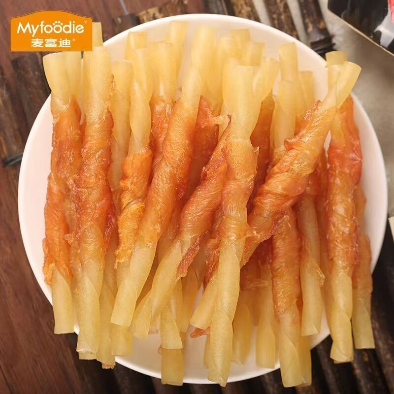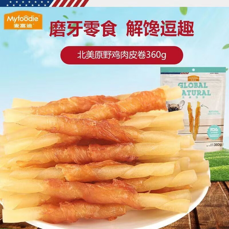 麦富迪(Myfoodie)狗狗零食北美原野系列磨牙解馋鸡鸭肉干比熊泰迪宠物训练奖励360g 鸡肉皮卷360g