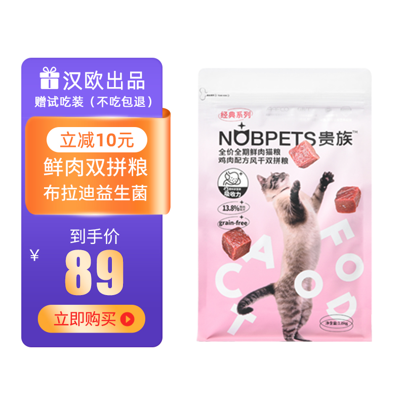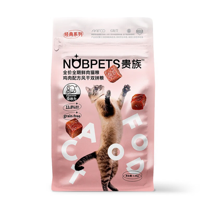 贵族NOBPETS 鲜肉猫粮 成猫冻干生骨肉 95双拼鲜肉粮 全价无谷 成猫/幼猫 奶糕全期猫粮 贵族经典全价全期风干双拼鸡肉猫粮1.8kg