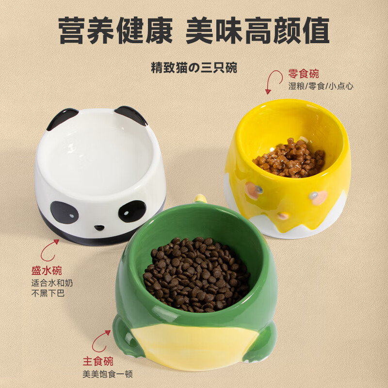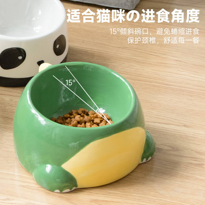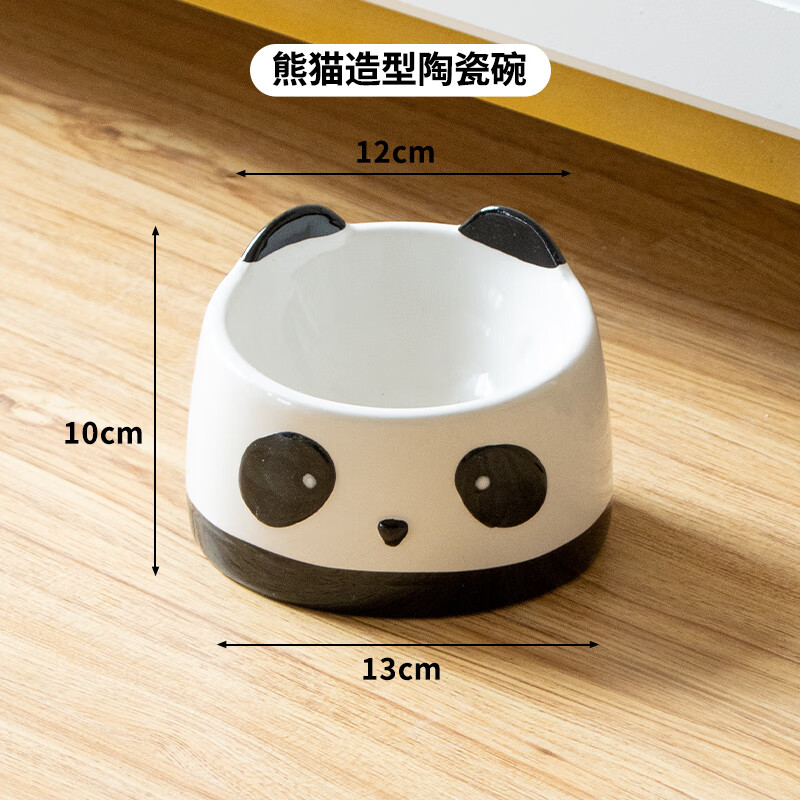 乐优派猫碗碗防打翻猫食盆可爱水碗保护颈椎幼猫狗碗 熊猫陶瓷碗(加宽底部 防打翻) 防滑护颈,预防黑下巴【犬猫通用