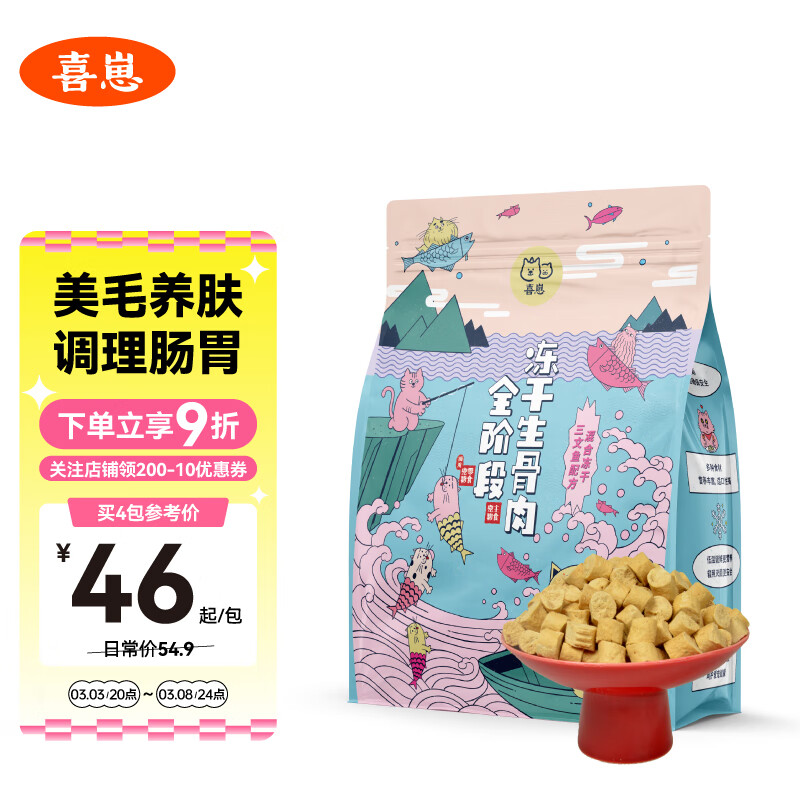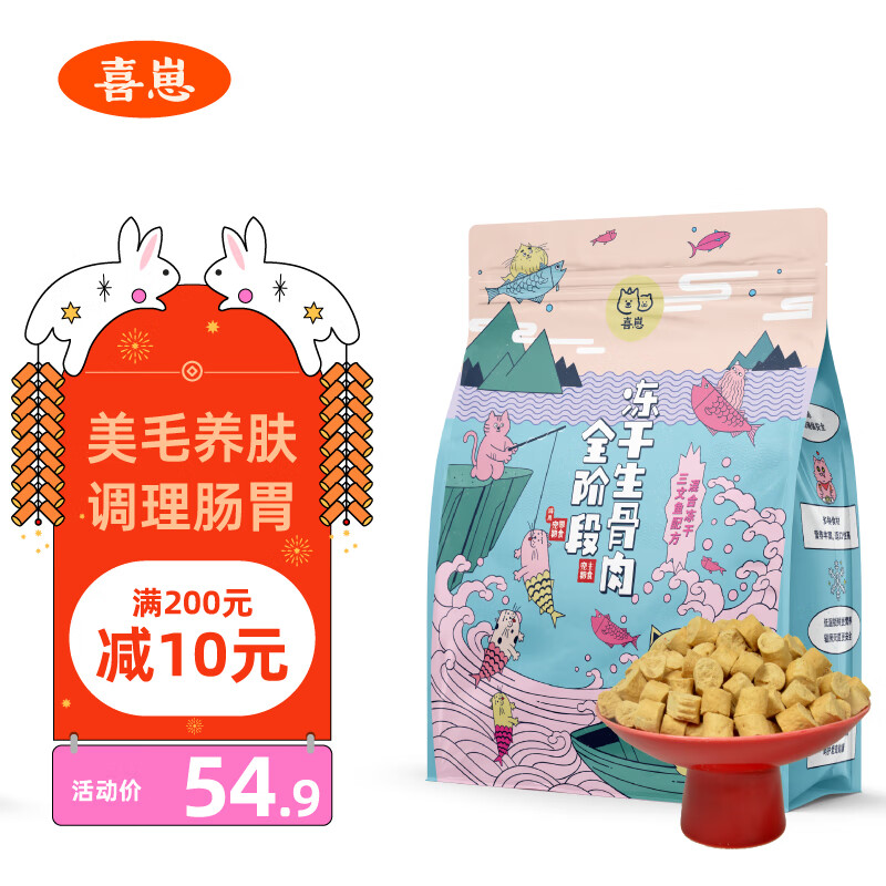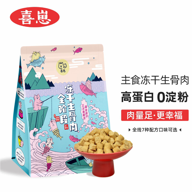 喜崽 主食冻干生骨肉三文鱼猫零食 补充鱼油猫咪美毛全价幼猫猫粮110g