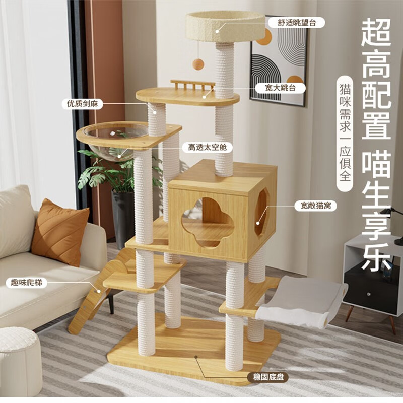 太空舱猫爬架猫窝猫树一体猫咪玩具别墅实木剑麻树干笼子猫抓板柱 旗舰款星空喵