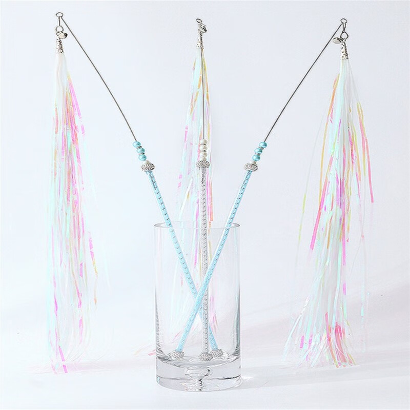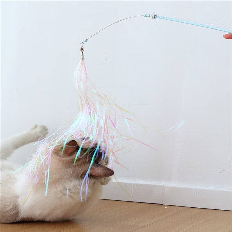 宠物用品彩色流苏响纸彩带带铃铛逗猫棒小猫幼猫互动猫咪玩具 1个(颜色随机)
