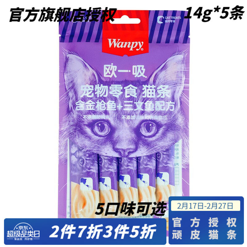 顽皮(Wanpy)猫条湿粮猫咪零食欧一吸成猫幼猫鲜封包猫咪增肥罐头14g*5条袋装 70g金枪鱼 三文鱼味14g*5条/袋