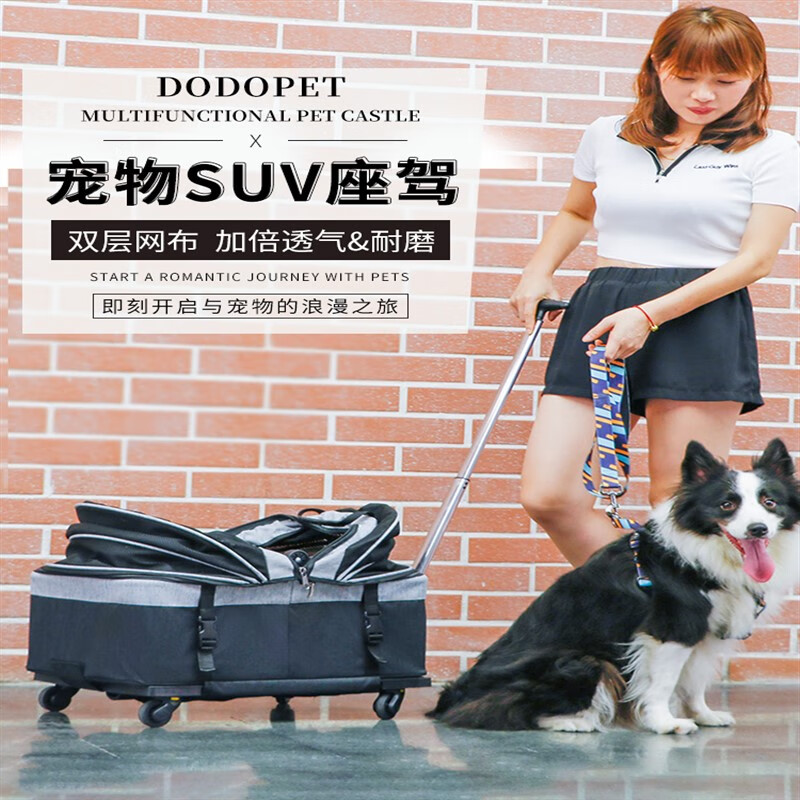 DO DO PET宠物拉杆箱多猫咪外出便携猫包大号折叠车载笼子中小型犬狗拉杆包 灰色【可分离式宠物拉杆箱】 建议35斤内宠物使用