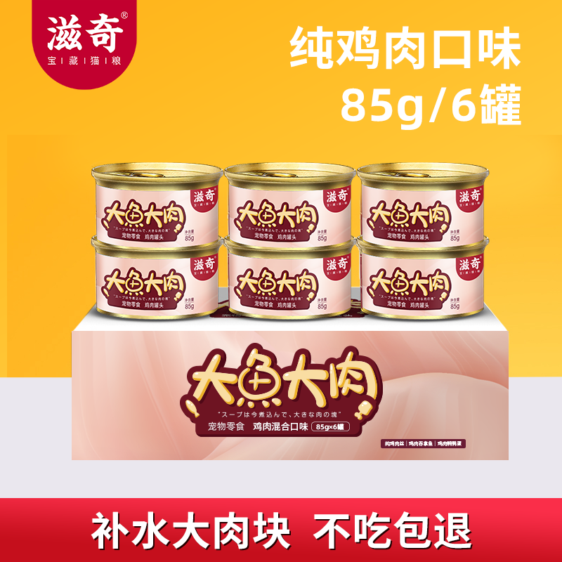 滋奇大鱼大肉猫罐头85g*6罐/箱成幼猫高汤补充营养猫咪湿粮罐头猫零食 纯鸡胸肉丝*6 85g/罐