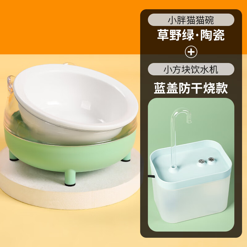 猫咪饮水机自动循环流动智能饮水器活水电动喝水狗狗水盆宠物用品 草野绿【陶瓷碗体】 蓝盖小方块饮水机