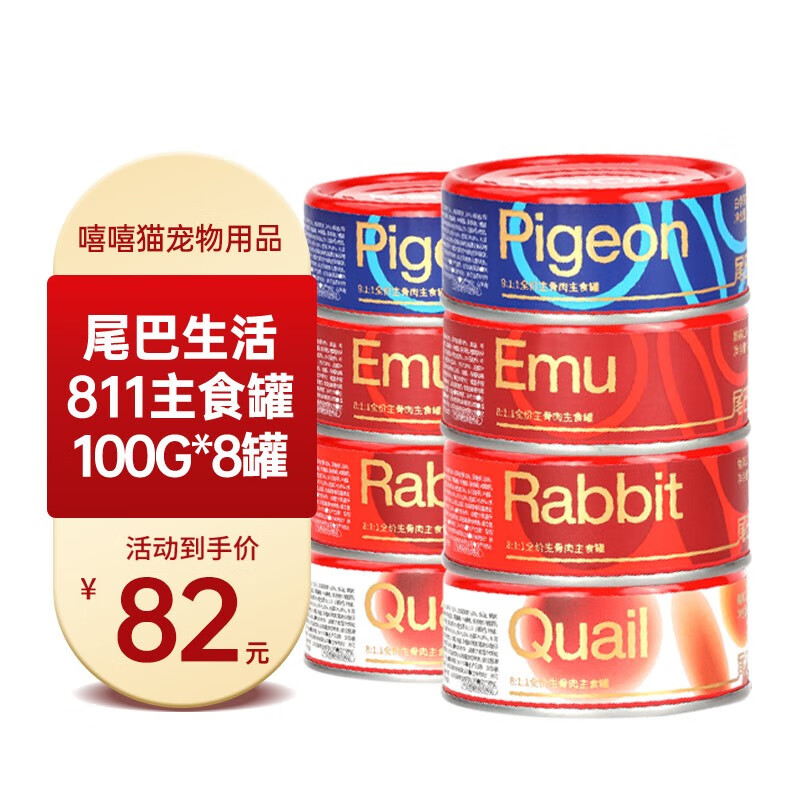 FURRYTAIL尾巴生活811主食罐猫咪全价生骨肉主食罐湿粮包猫粮猫罐头猫罐头 100g*8罐(进阶口味 鸸鹋/兔肉/鹌鹑/白条)