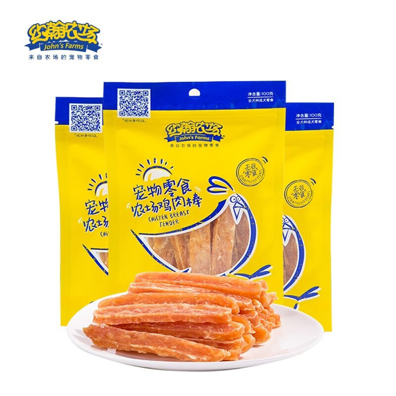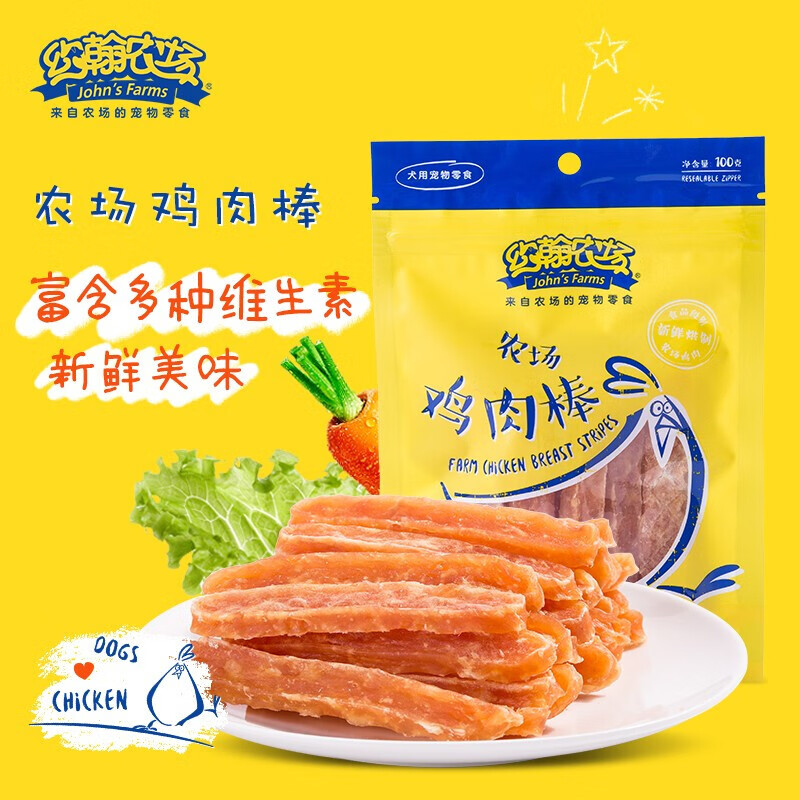 约翰农场狗狗零食大礼包宠物训犬鸡胸肉干泰迪博美金毛幼犬洁齿磨牙肉干 鸡棒肉100g