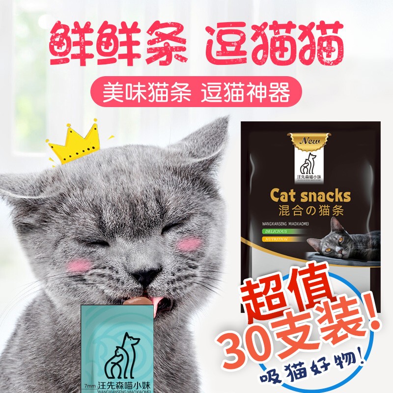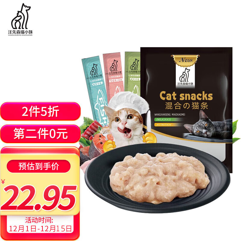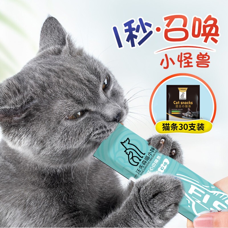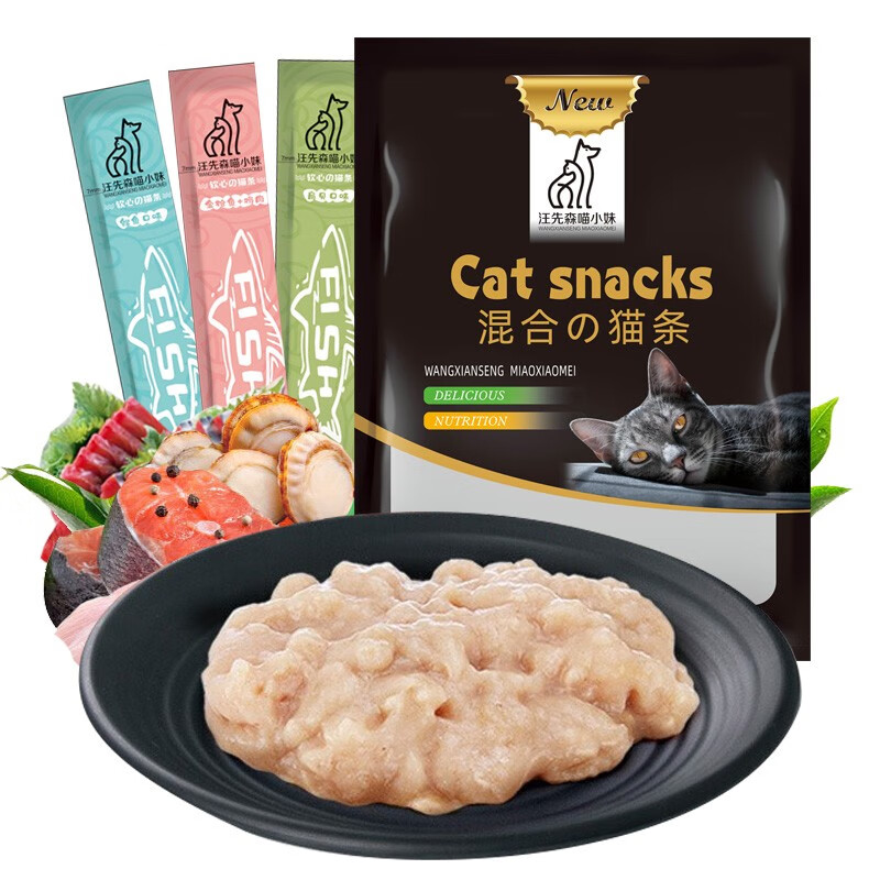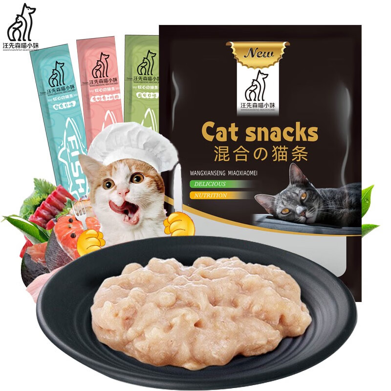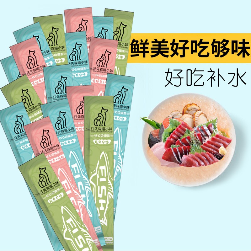 汪先森喵小妹 混合口味猫条宠物猫咪零食罐头成猫幼猫湿粮肉泥深海鱼营养补水发腮餐包软包450g(15g*30条)