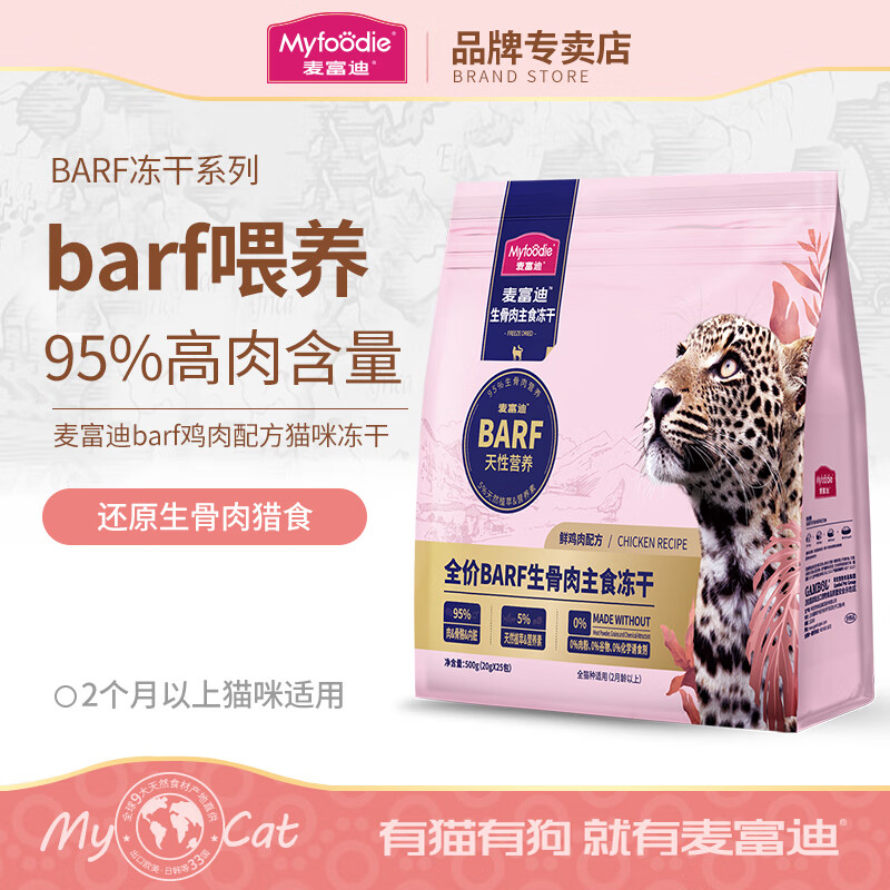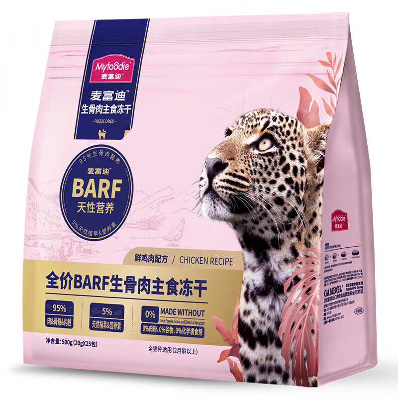 麦富迪barf生骨肉冻干猫粮 全价主食猫零食营养成幼全期 鲜鸡肉配方500g