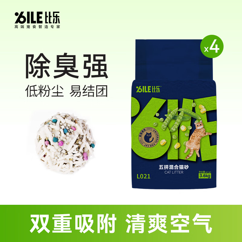 比乐猫砂豆腐猫砂除臭低尘结团快速原味豆腐猫沙可冲厕活性炭混合猫砂 五拼猫砂3.6kg*4