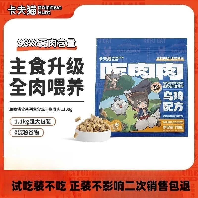卡夫猫主食冻干生骨肉猫咪主食冻干幼猫成猫主粮全阶段猫粮1100g 乌鸡口味1100g送试吃10g