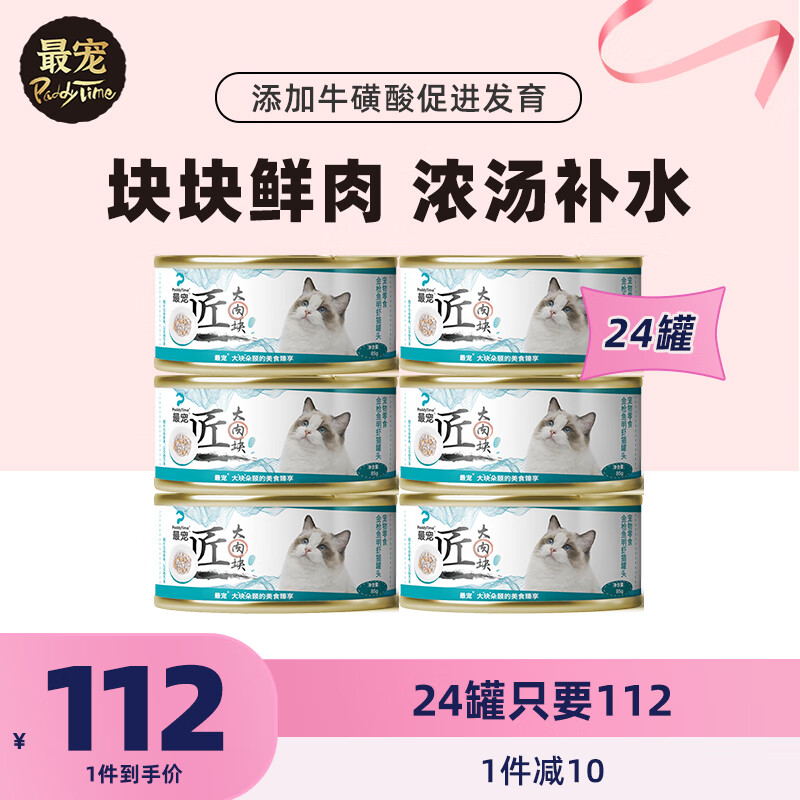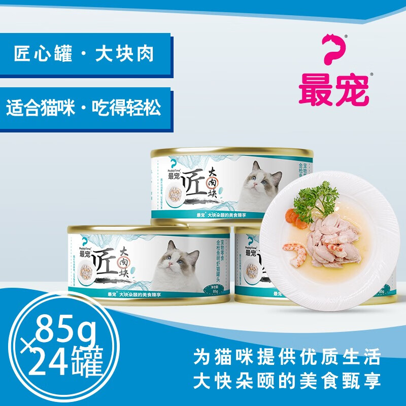 最宠(Paddy Time)猫罐头 大肉汤猫罐头宠物零食罐汤汁鲜肉猫粮猫湿粮成幼猫 金枪鱼明虾汤罐85g*24罐