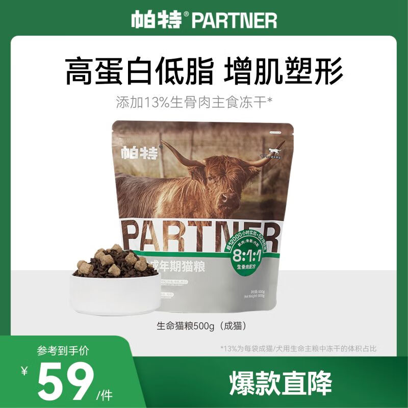 帕特生骨肉冻干猫粮高蛋白无谷成猫粮增肥全价生命成猫粮500g 成猫