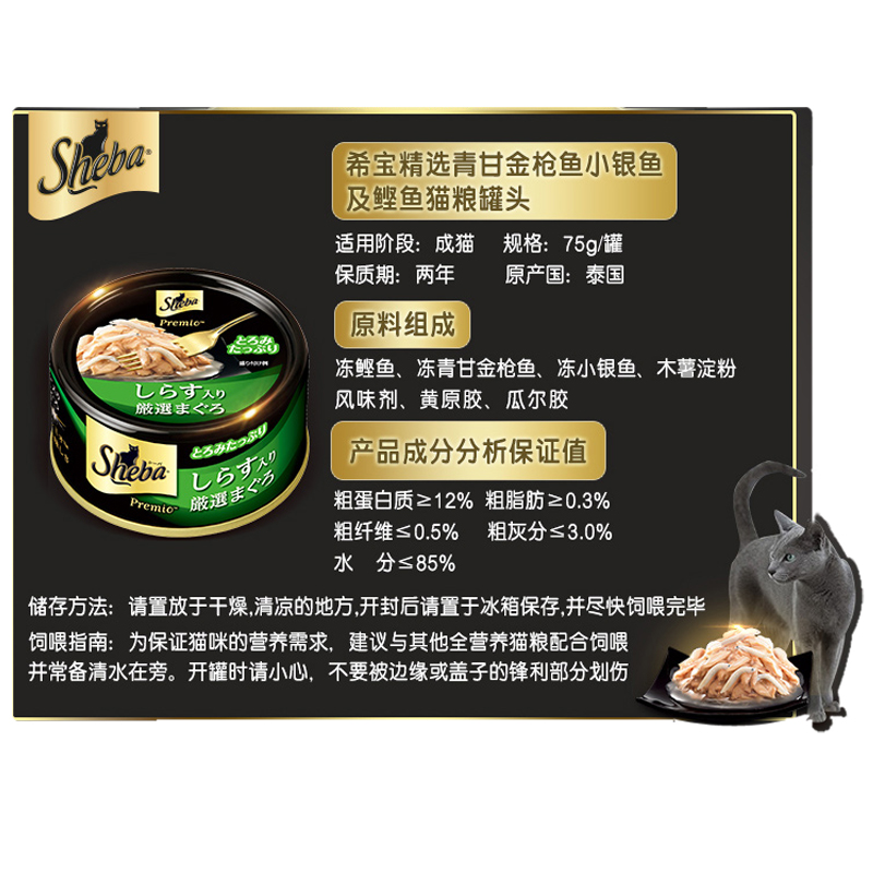 希宝猫罐头黑罐猫零食sheba金枪鲣鱼鸡胸肉成猫湿粮黑金罐75g6罐/24罐 蓝红罐两种混合75g*24罐