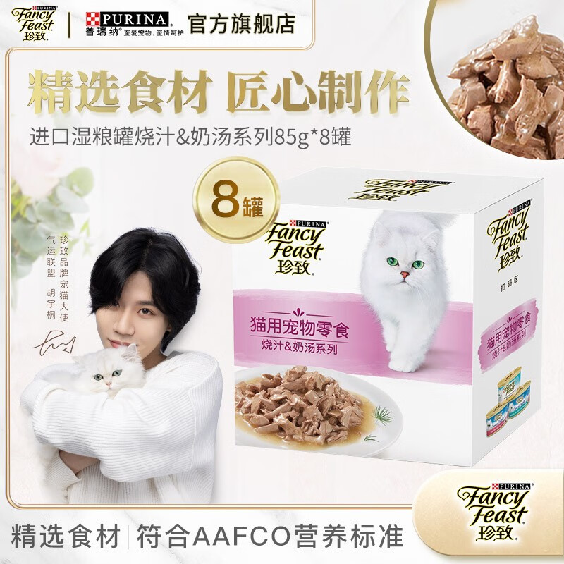 珍致(FancyFeast)定制猫罐头 美国进口成猫猫湿粮主食级猫罐头 混合装 烧汁奶汤礼盒 85g*8