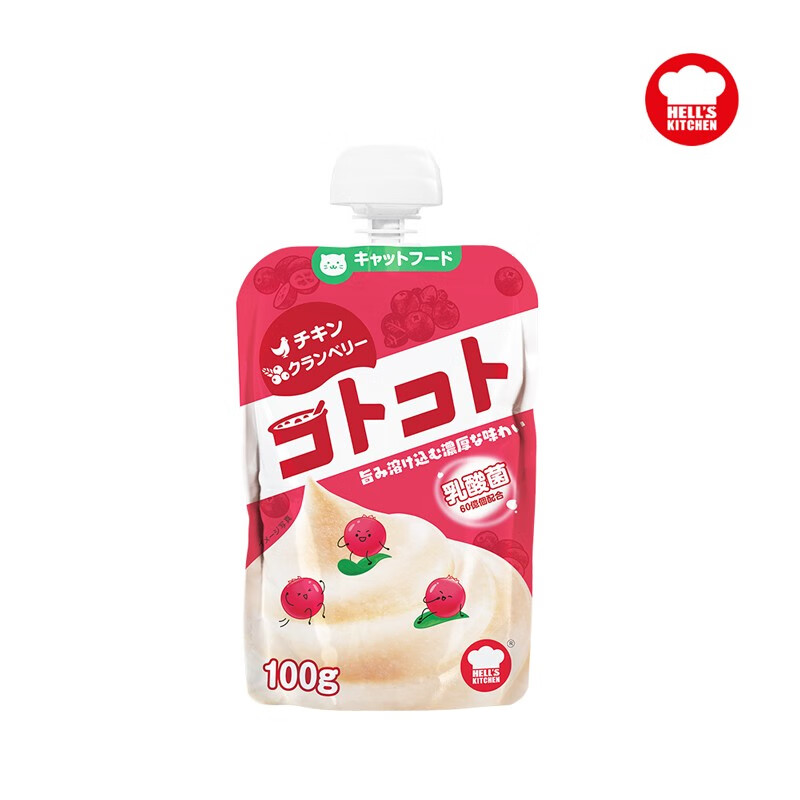 Hell's kitchen地狱厨房咕噜酱猫条猫零食成猫幼猫猫咪零食罐头湿粮适口添加乳酸菌营养补充 鸡肉蔓越莓100g*6袋