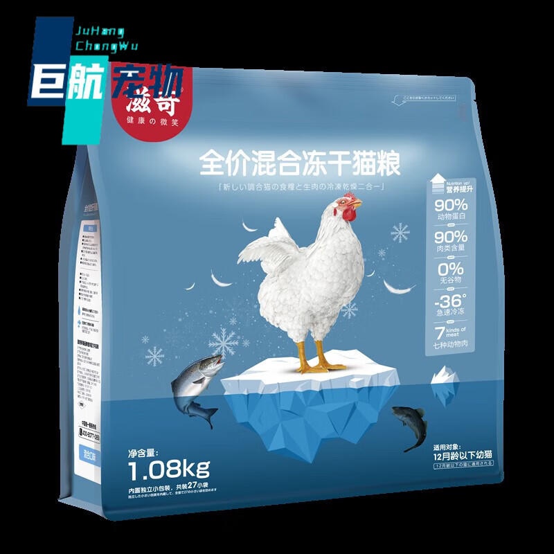 凛东滋奇 冻干猫粮 成猫全价冻干粮三文鱼牛肉鸡肉增肥发腮 1.08kg/袋 成幼猫混合口味 三文鱼 牛肉 鸡 1.08kg