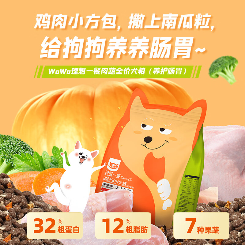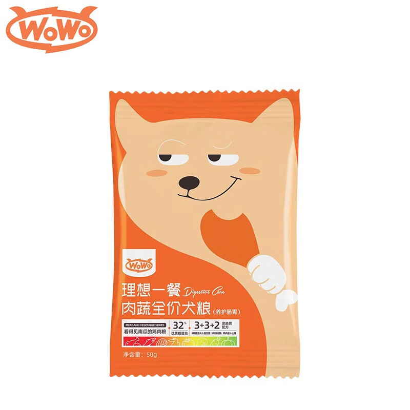 喔喔(WOWO)狗粮 肉松肉蔬狗粮 全价犬粮 0谷物鸡肉南瓜味成犬幼犬通用狗主粮 试吃装50g