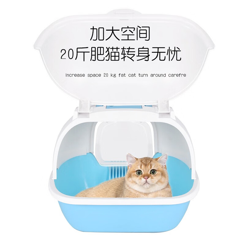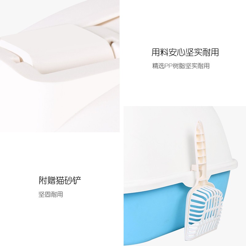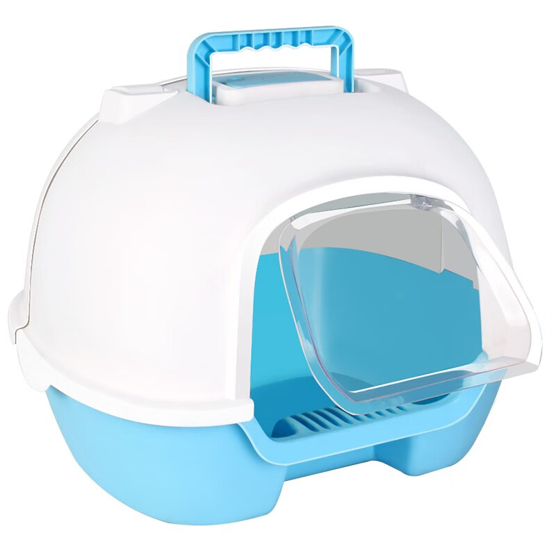 憨憨宠 猫砂盆全封闭大号猫厕所防外溅猫沙盆后掀式拉屎盆宠物厕所猫咪用品 蓝色(双门式)