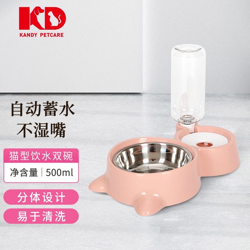 倍儿蜜猫碗猫盆猫粮碗猫食盆狗碗狗盆狗饭盆狗狗喝水宠物喂食饮水 猫型自动续水双碗-粉色
