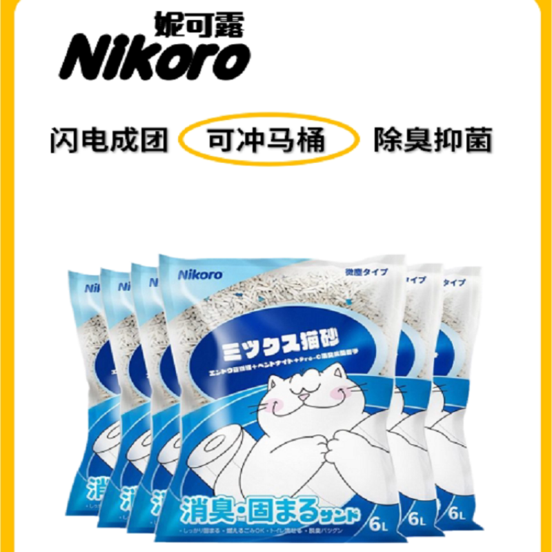 日本nikoro猫砂妮可露混合猫砂活性炭除臭膨润土可冲厕所豆腐猫砂