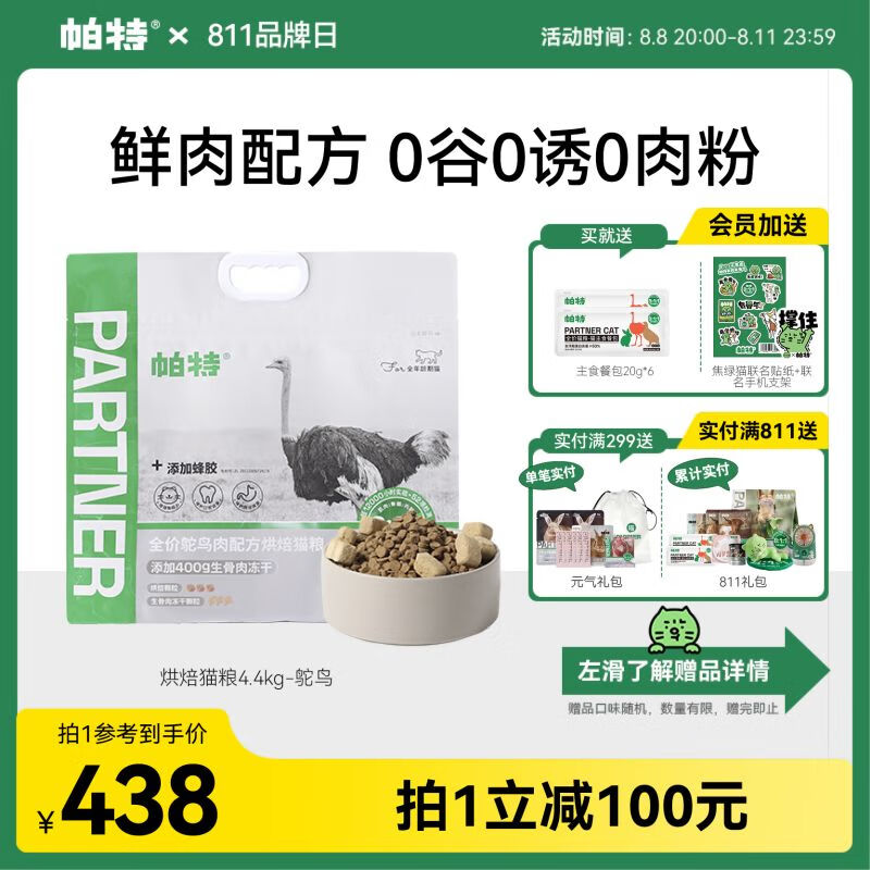 帕特猫粮烘焙粮冻干鸡肉蛋黄猫主食成猫幼猫专属全阶段布偶全价粮 鸵鸟味 4.4kg(效期至23年12月)
