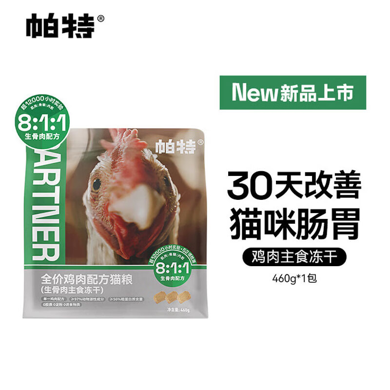 帕特全价鸡肉配方猫粮 生骨肉主食冻干配方成幼猫冻大包装460g
