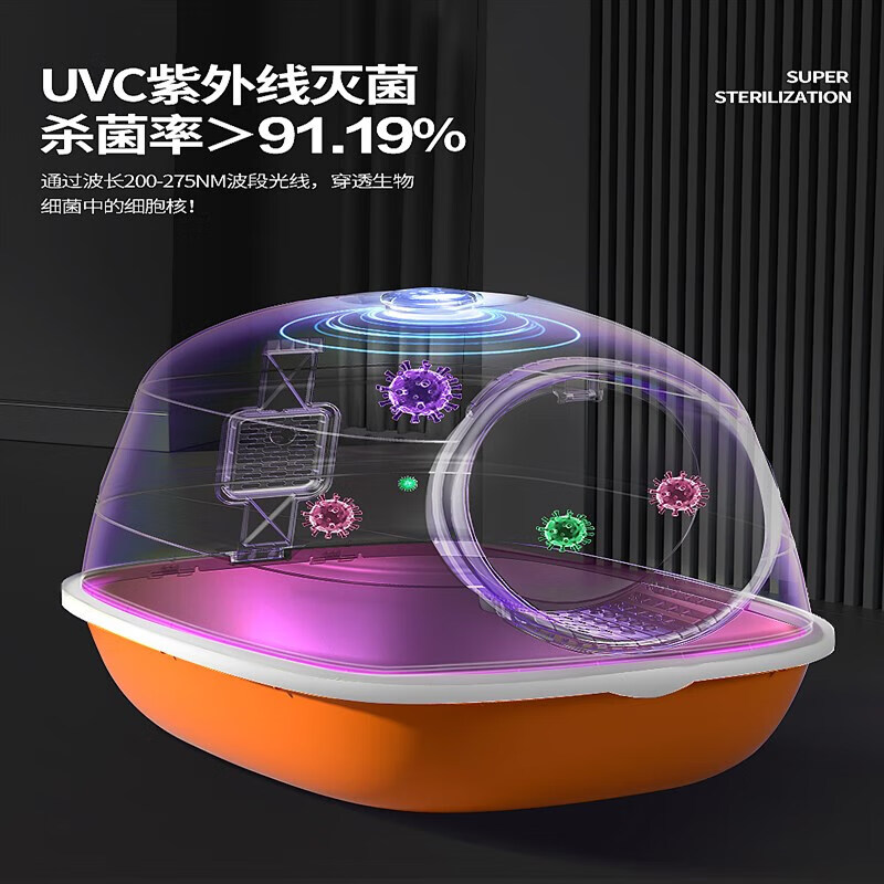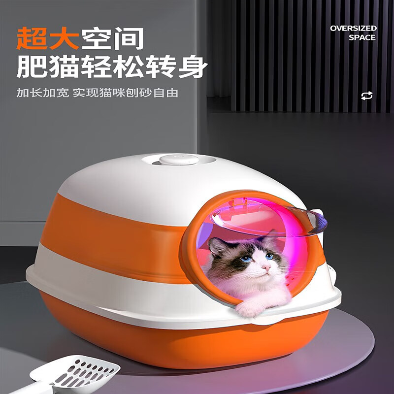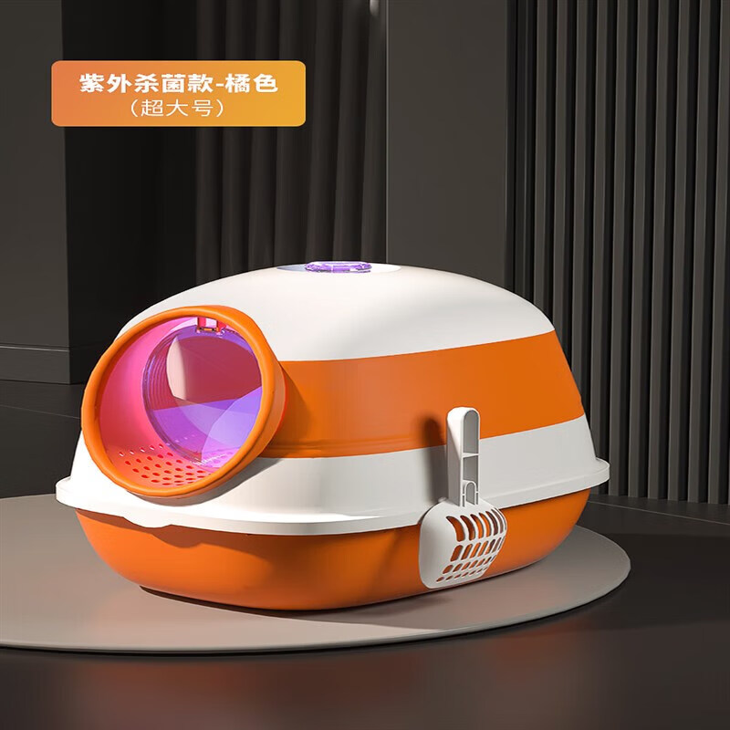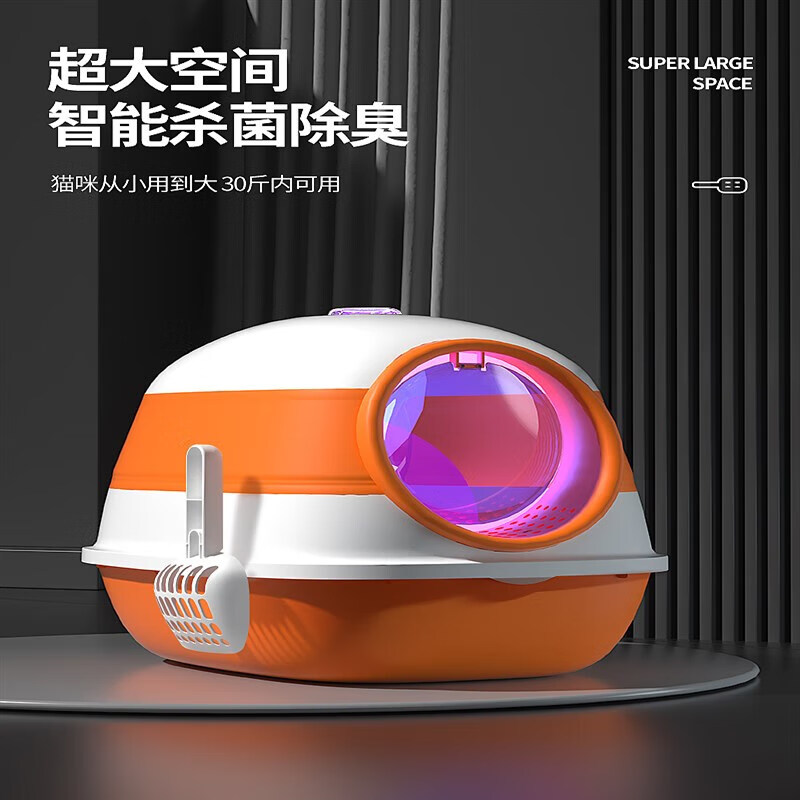 宠淘气智能猫砂盆厕所超大号全封闭式猫沙盆子除防臭屎盆防外溅大猫砂盘 橙色升级款【紫外线消毒灯