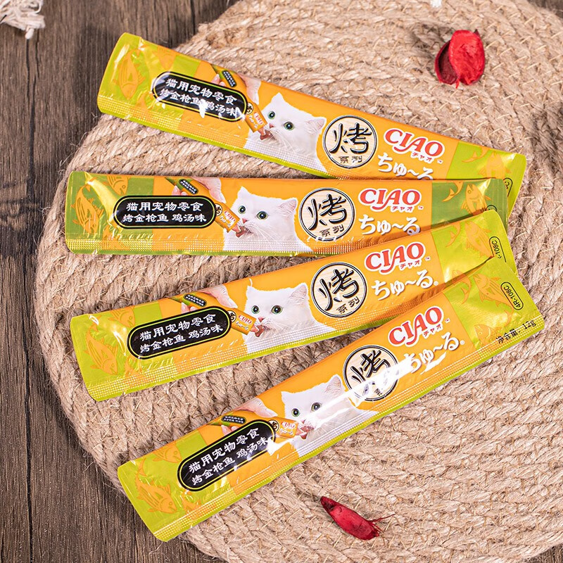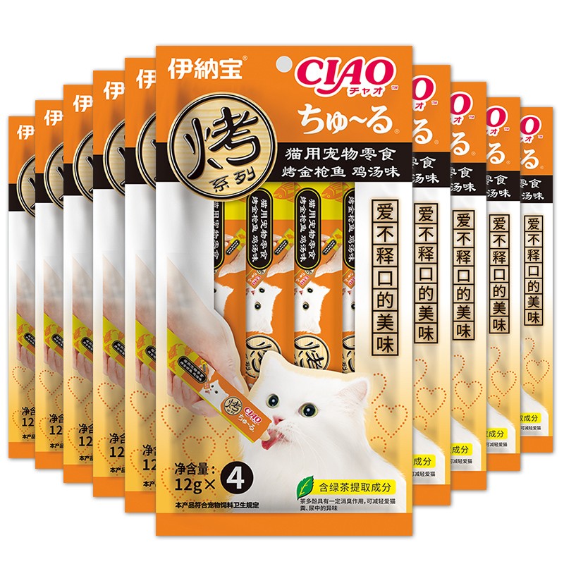 伊纳宝猫用宠物零食 烤系列猫条猫果冻 海洋鱼流质肉泥湿粮猫零食 鸡汤味12g*4条*10包