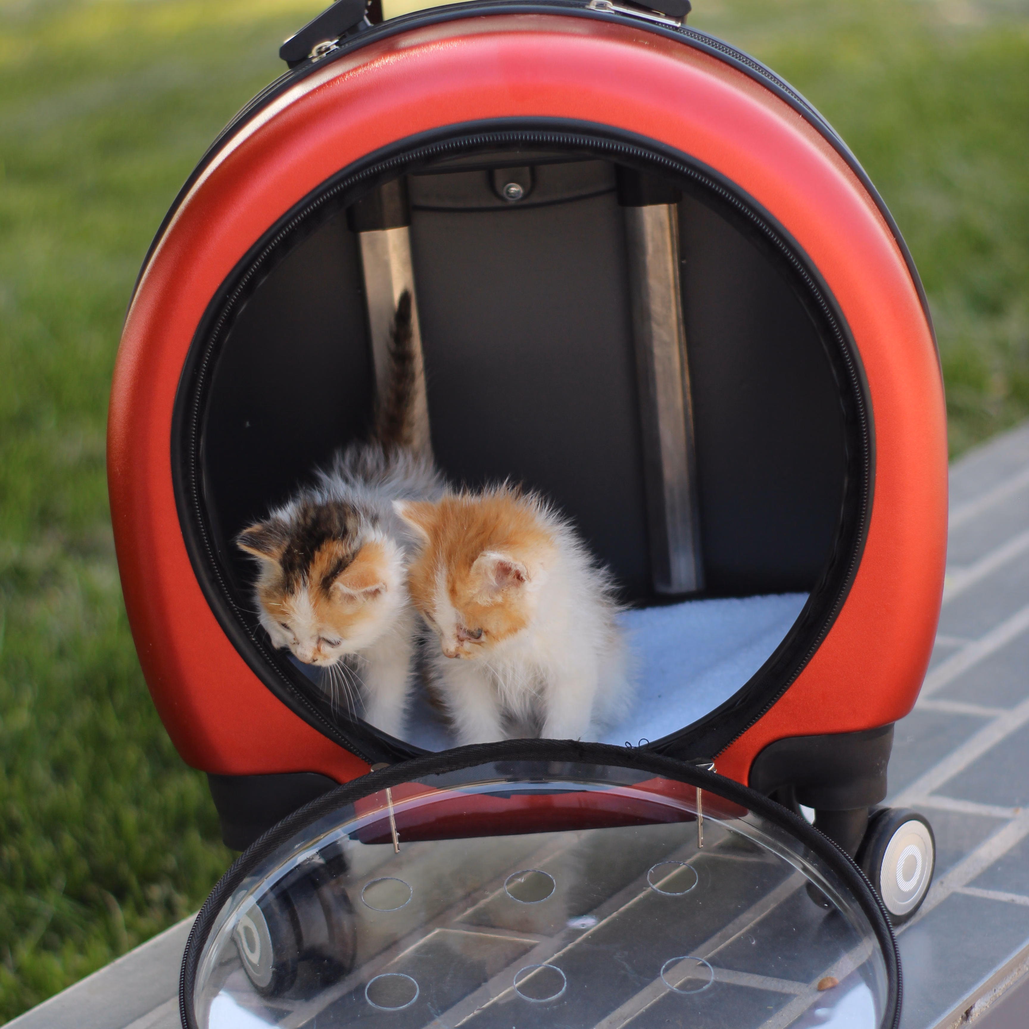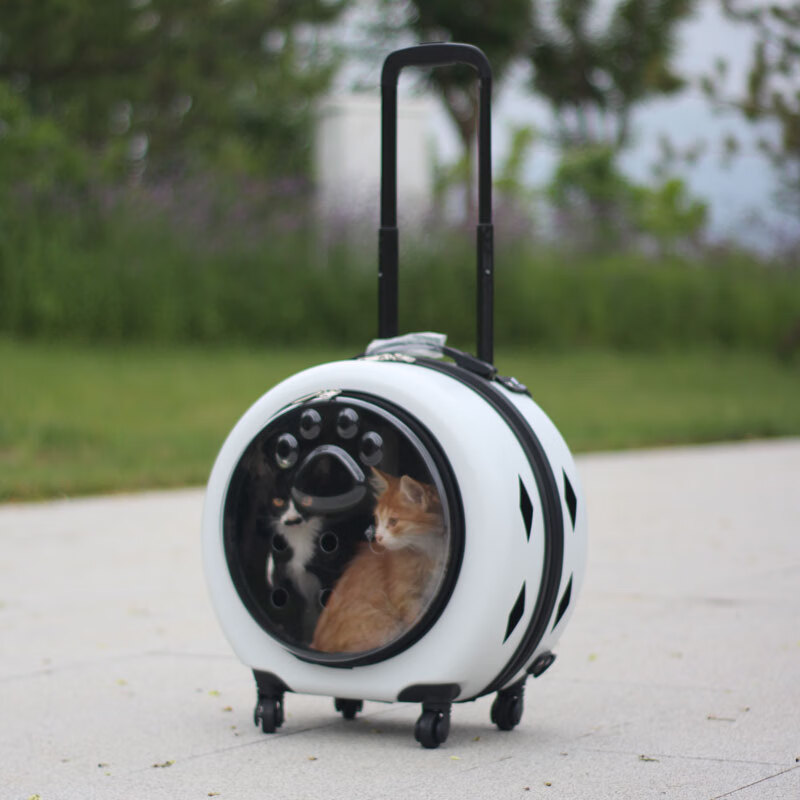 姒桀大容量透明猫包外出外出箱猫狗包推车超 圆形白色前开拉链窗 小号37*43*24【15斤内猫咪】