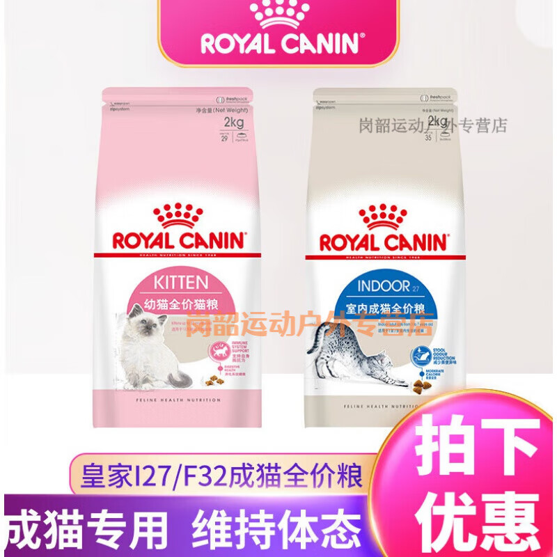 皇家猫粮 幼猫奶糕 猫粮成猫全价i27室内成猫粮专用f32营养 f32营养成猫粮2kg 0lb