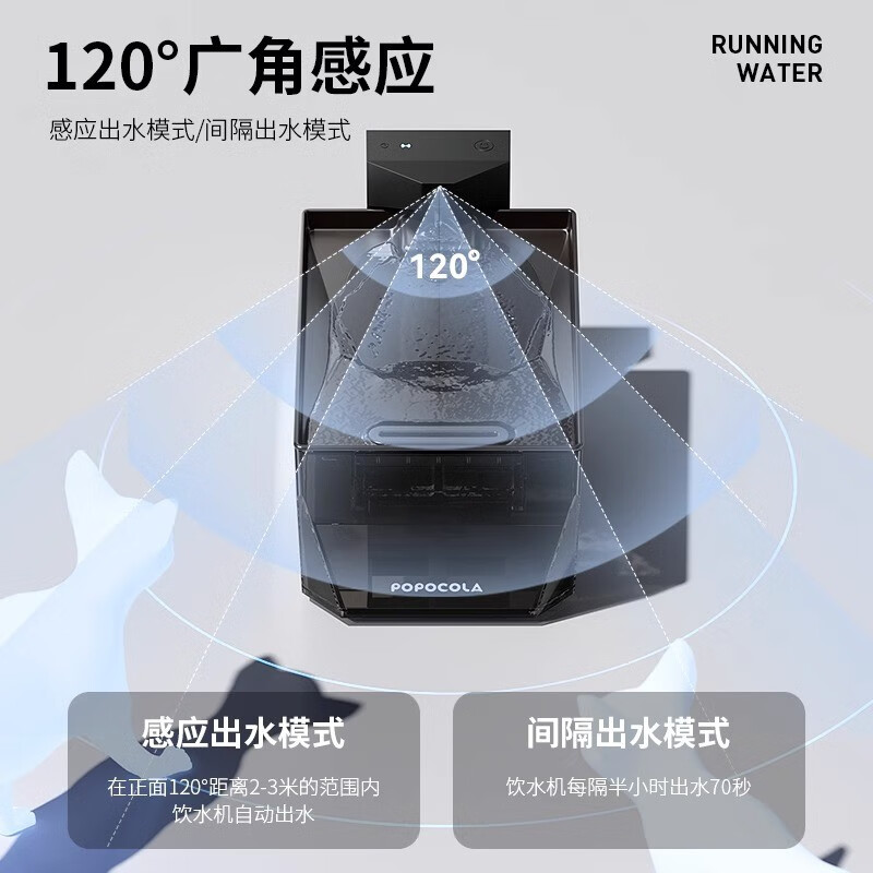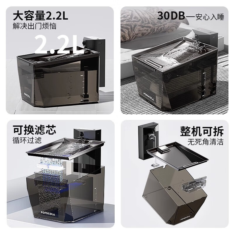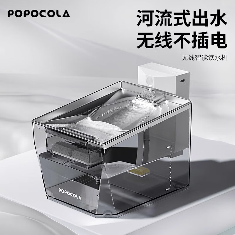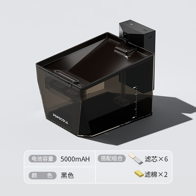 POPOCOLA猫咪饮水机不插电自动无线循环流动喝水器水盆喂水宠物饮水器 黑【5000mAH 滤芯*6 滤棉*2】