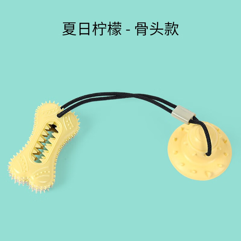KimPets狗狗玩具幼犬磨牙棒耐咬小型犬互动小狗吸盘漏食球宠物泰迪自嗨解闷神器 黄色骨头款 【中小型犬】