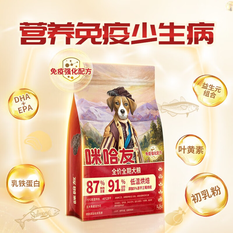 咪哈友狗粮成犬粮 幼犬老年狗粮 全价低温烘焙无谷物 大型犬金毛 免疫强化4500g