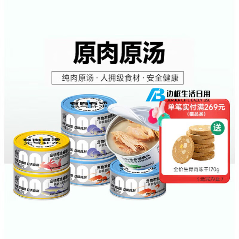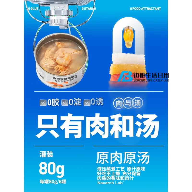 耐威克(Navarch)猫罐头猫咪零食叁零猫罐头80g6罐成幼猫增肥发腮补充营养无诱食剂 6罐 鸡丝兔肉喷喷香罐