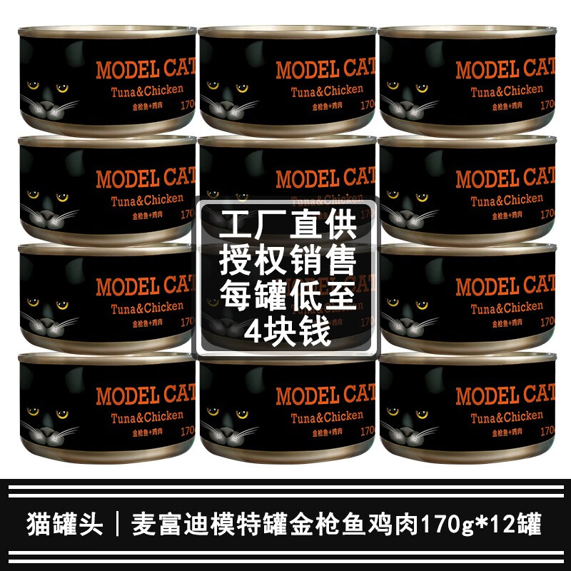 麦富迪(Myfoodie)猫罐头 模特罐金枪鱼红肉湿粮罐头 成幼猫通用 金枪鱼鸡肉170g*12罐