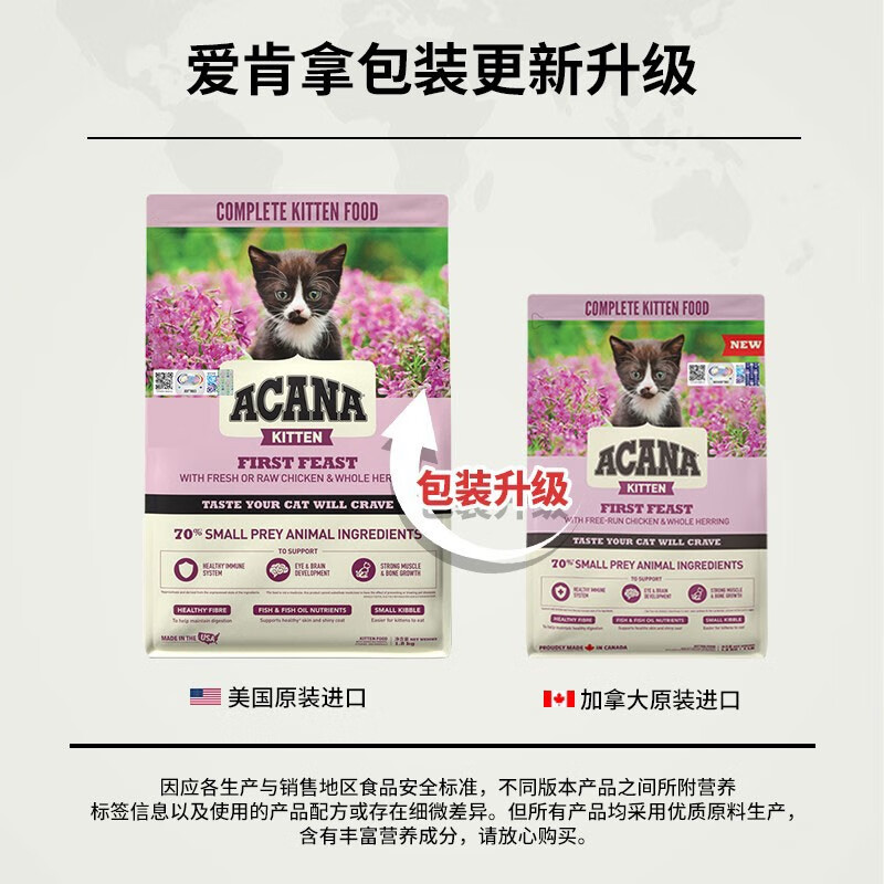 爱肯拿(ACANA)幼猫粮第一场盛宴加拿大进口增肥营养发腮1.8kg猫主粮 鸡肉幼猫粮1.8kg【23/7月】
