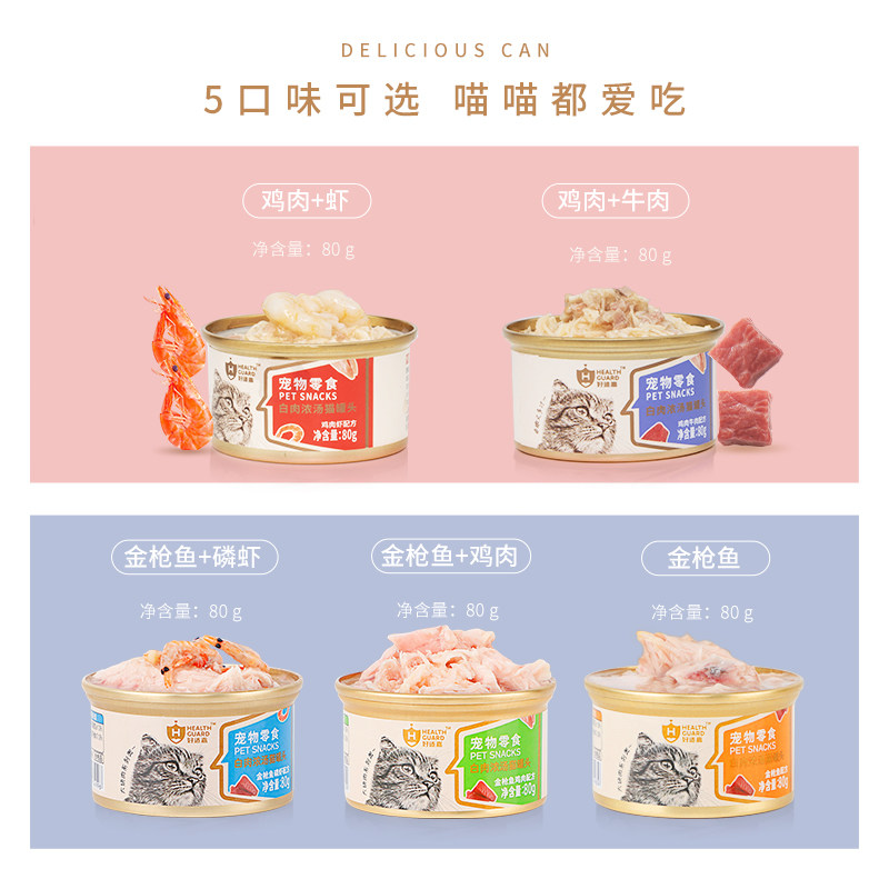 好适嘉猫罐头猫咪零食湿粮增肥鸡肉牛肉明虾营养补水主食罐80g*6