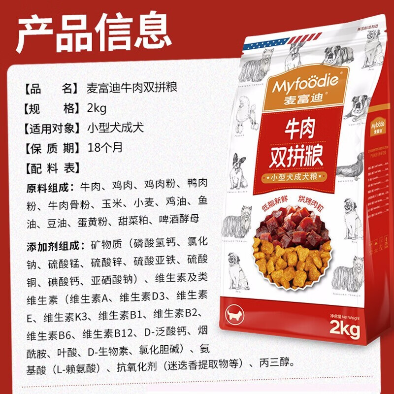 麦富迪(MYFOODIE)狗粮牛肉双拼狗狗主粮小型犬通用贵宾泰迪专用成犬粮宠物牛肉粒 全价小型犬成犬粮
