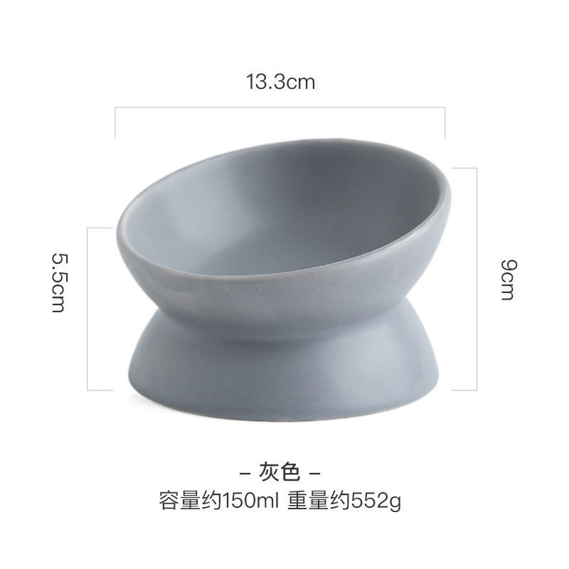 猫碗陶瓷猫食盆保护颈椎斜口碗防黑下巴碗防打翻粮碗宠物碗猫咪碗 灰色矮脚护颈宠物碗 适用于猫丨小型犬