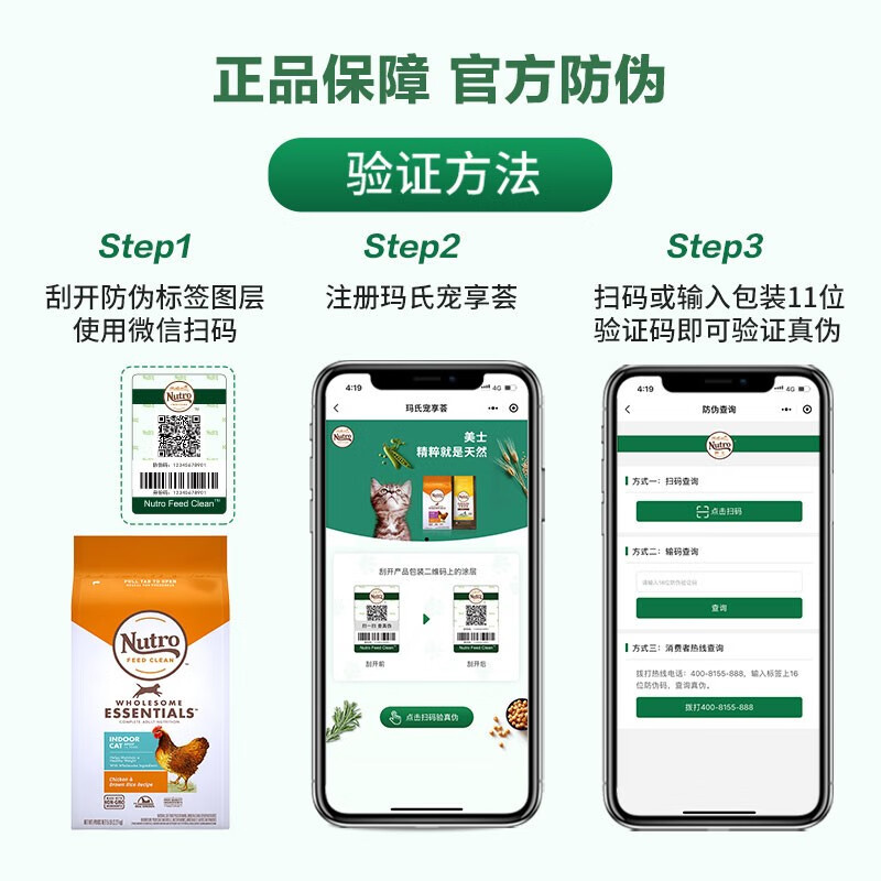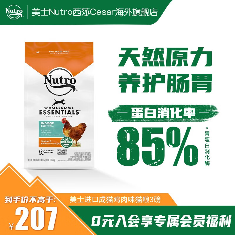 美士Nutro进口猫粮成猫鸡肉3磅/1.36kg蓝猫猫咪天然粮【24年3月起】