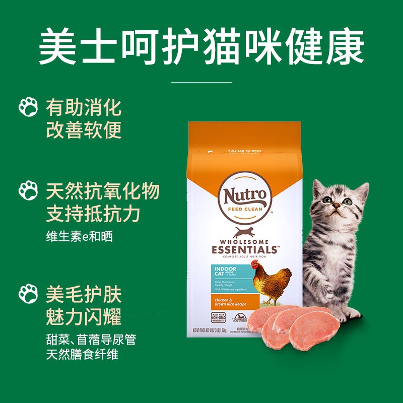 【美国进口】Nutro美士全护营养系列全价室内成猫猫粮5磅 2.27kg