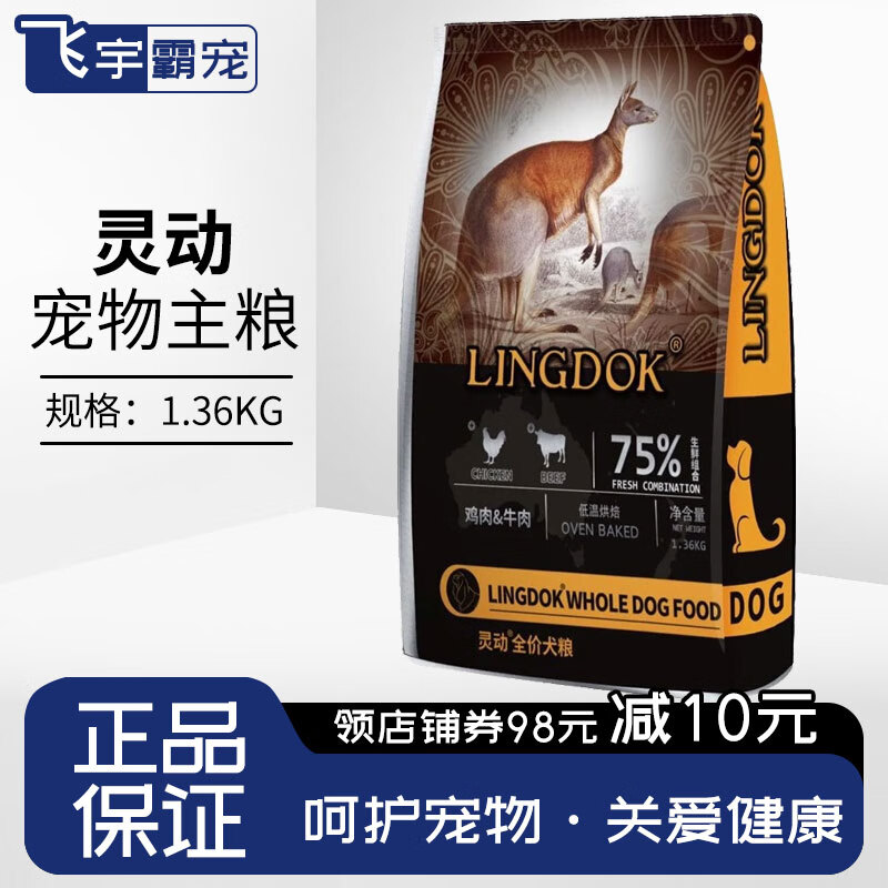 灵动(Lingdok)犬粮低温无谷全价狗粮烘焙粮鲜肉全犬期全阶段通用狗主粮 鸡肉 牛肉 1.36kg
